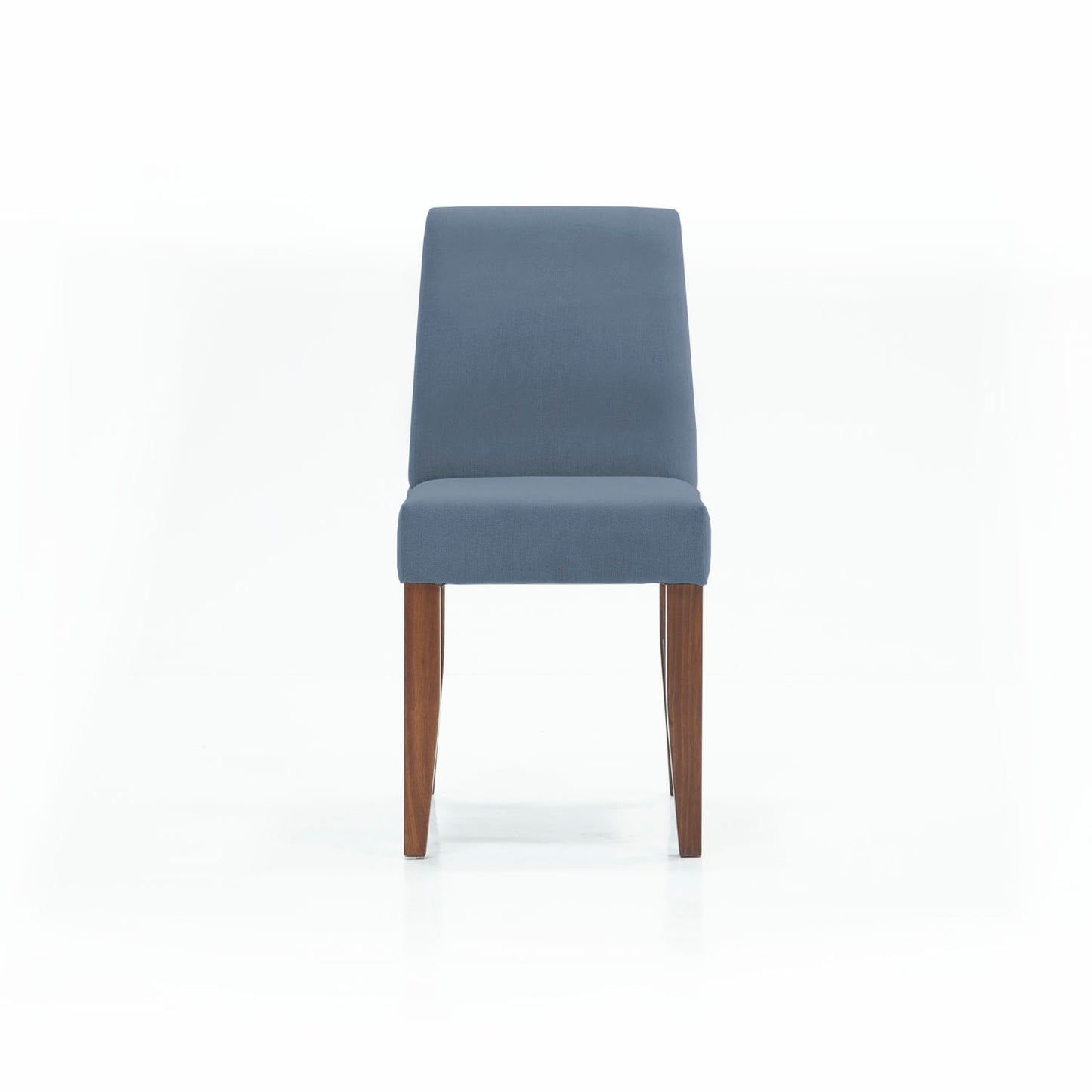 Silla de respaldo bajo liso, sin brazos. Sobre cuatro patas de madera de pino, acabado a elegir. Tapiz a elegir.